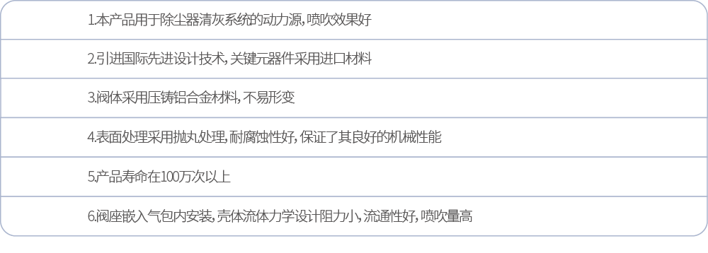 | 膜片壽命 | 噴吹100萬次以上 | ||