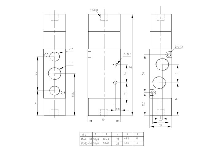 | 接管口徑 | 進(jìn)氣=出去=3/8” 排氣=1/4" |