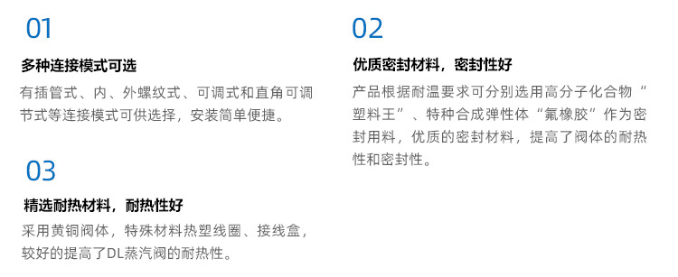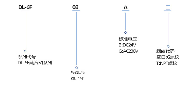DL-6F型二位二通直動式高溫蒸汽電磁閥,可獨(dú)立安裝在熨燙設(shè)備上,電氣部分防水性能好,有插管式、內(nèi)、外螺紋式、可調(diào)式和直角可調(diào)式。