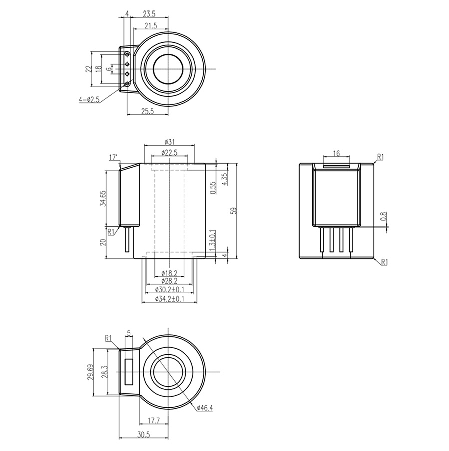 熱塑性塑封類二通式引線式常溫電磁閥線圈
