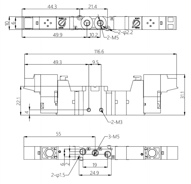 | 接管口徑 | 進(jìn)氣口=工作口=排氣口=M5 | 進(jìn)氣口=工作口=排氣口=1/8 | 進(jìn)氣口=工作口=1/4 | |