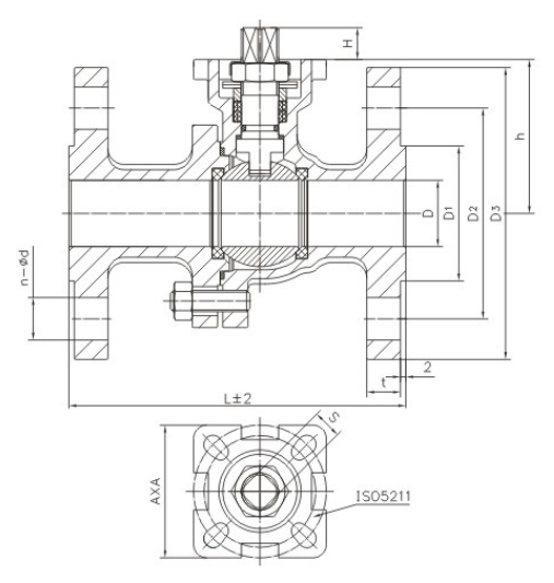 | 型號 | 接口螺紋 | DN | D | L | S | D1 | D2 | D3 | t | f | n-Φd | ISO5211 | H | 執(zhí)行器 | |