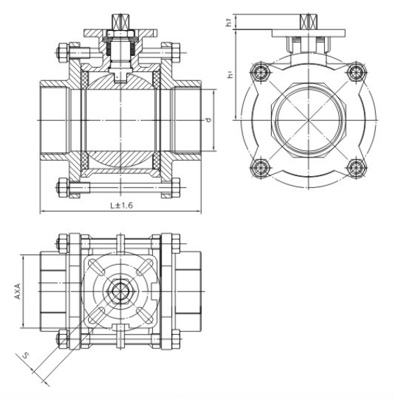 | 型號(hào) | 接口螺紋 | DN | D | L | h1 | h2 | ISO5211 | A | S | 執(zhí)行器 | |