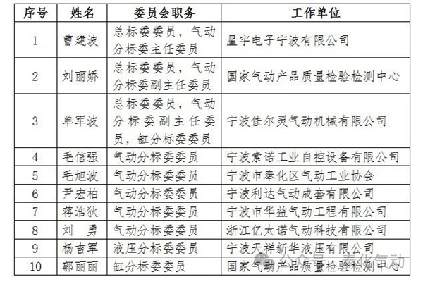 其中B—sports必一電子董事長曹建波被聘為氣動分標委主任委員,佳爾靈氣動副總經(jīng)理單軍波和國家氣動檢測中心主任劉麗嬌2人為副主任委員。